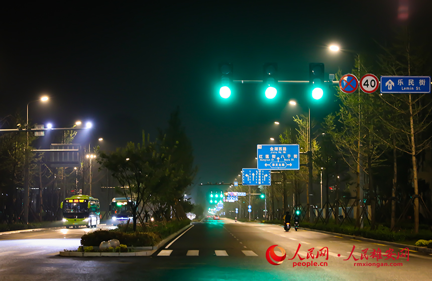 容東片區在綠色交通理念下,通過窄路密網將整體分割成許多小街區,鼓勵綠色出行,降低環境污染。目前,容東片區多條公交線路24小運行。人民網?宋燁文攝