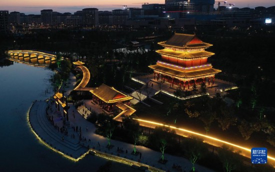 這是河北雄安新區金湖公園夜景(7月28日攝,無人機照片)。