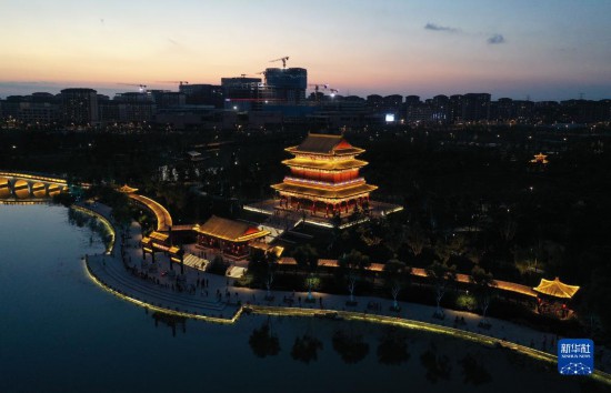 這是河北雄安新區金湖公園夜景(7月28日攝,無人機照片)。
