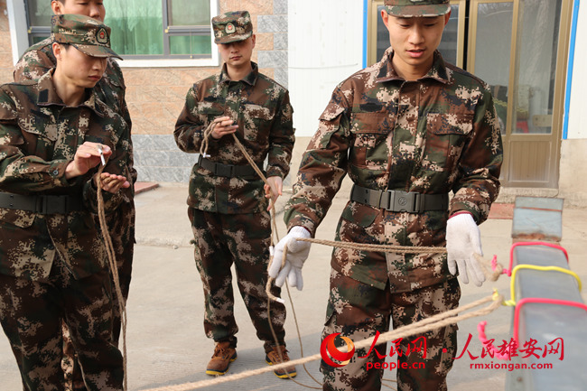 鄭威威(右1)正在教隊員捆繩技巧。受訪者供圖