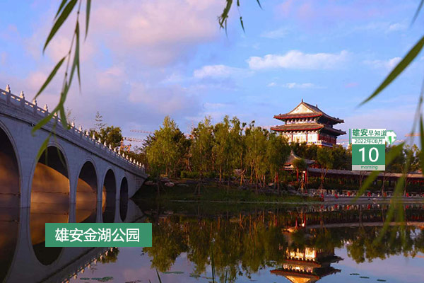 今天是2022年8月10日,星期三,天氣多云轉陰,21℃~28℃。在封面和大家見面的是雄安新區金湖公園景色。