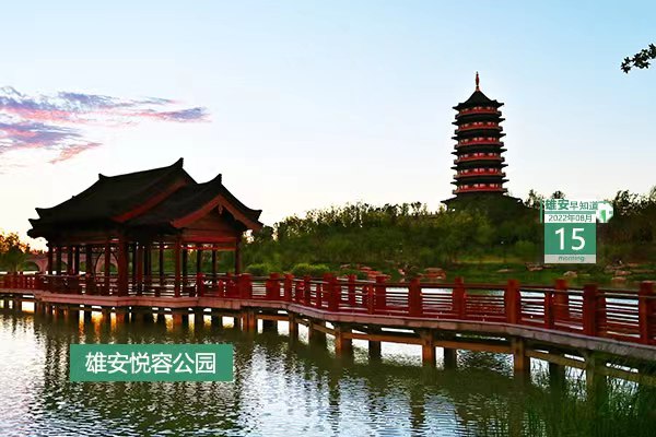 今天是2022年8月15日,星期一,天氣多云轉晴,22℃~36℃。在封面和大家見面的是雄安悅容公園。