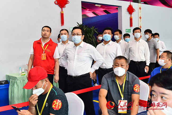 雄東片區安置房分配現場喜氣洋洋,人們乘坐著接駁車輛陸續抵達,經過掃碼、測溫等程序后,有序進入等候大廳按流程進行搖號分房。張國華一行先后來到位于雄縣經濟開發區、雄縣征遷群眾便民服務保障中心的回遷群眾集合點和搖號現場,現場觀摩安置房分配系統運行和群眾搖號分房過程,察看回遷工作準備情況,對有關工作進行了細致部署,并親切慰問了現場工作人員和志愿者。