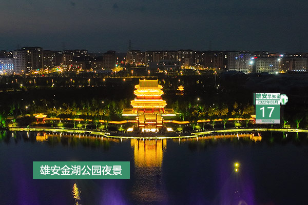 今天是2022年8月17日,星期三,天氣多云,24℃~32℃。在封面和大家見面的是雄安金湖公園夜景。