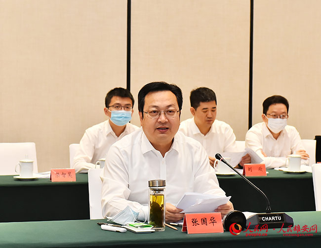 張國華首先代表雄安新區黨工委、管委會對各家企業的到訪和長期以來對新區的關注和支持表示衷心感謝。他表示,近年來,新區黨工委管委會認真貫徹落實黨中央、國務院決策部署和省委、省政府工作安排,牢牢把握北京非首都功能疏解集中承載地這一首要定位,圍繞創造“雄安質量”、建設“廉潔雄安”和打造新時代高質量發展的全國樣板,高標準高質量推動新區建設發展取得重要成效?!?+4+26”規劃體系、“1+5+22+100”的城市空間格局、“1+N”政策體系等頂層設計基本形成,承接疏解有序推進,首批疏解項目全面落位,重點片區和重大項目加快建設,“三個層次”片區開發建設同步推進、融合發展,生態環境質量穩中向好,“一淀、三帶、九片、多廊”生態空間格局初具雛形,教育、醫療、養老等公共服務設施不斷完善,新區的綜合承載能力、聚集吸引能力、自我發展能力全面增強,為雄安新區長遠發展奠定了堅實基礎。