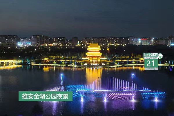 今天是2022年8月21日,星期日,天氣陣雨轉大雨 ,24~31℃。在封面和大家見面的是雄安金湖公園夜景。
