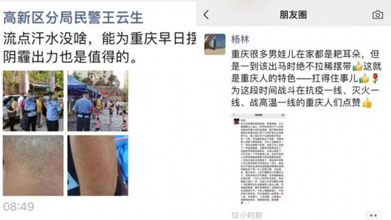 與此同時,在重慶人的朋友圈里,也匯聚著整座城市的清涼與力量,共同守護這座城市的生命,安寧,發展。