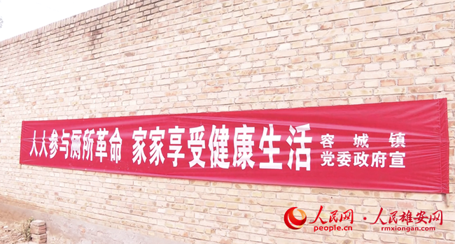 容城縣容城鎮開展廁改工作的宣傳橫幅。王世恒攝