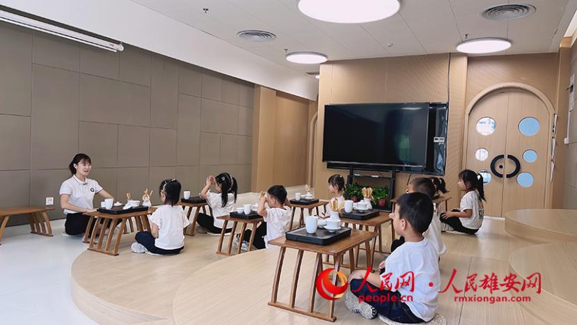 新學期,雄安容和佳泰幼兒園為孩子們準備了茶藝課。雄安容和佳泰幼兒園供圖