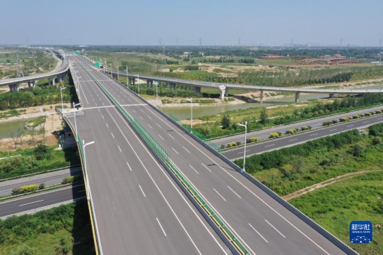 河北雄安新區海岳大街與京雄高速連接線(9月2日攝,無人機照片)。