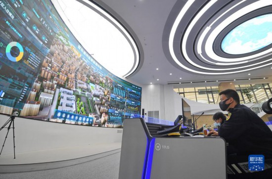 工作人員在雄安新區容東城市運營管理中心監管平臺工作(2022年3月29日攝)。新華社記者 朱旭東 攝