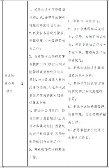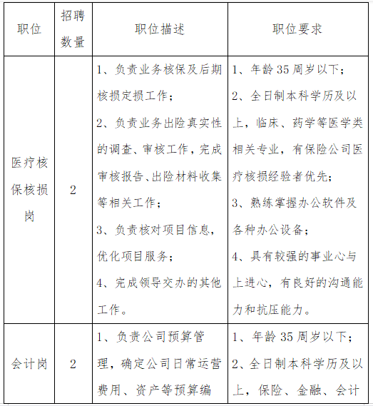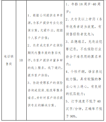 人民網雄安9月11日電(何美萱)中國太平洋財產保險股份有限公司河北雄安分公司現面向社會公開招聘18人。此次招聘包括醫療核保核損崗、會計崗、信息技術崗、非車險綜合管理崗、電話銷售崗,有意者可于9月30日前將簡歷發送至郵箱A909018780@163.com進行報名。