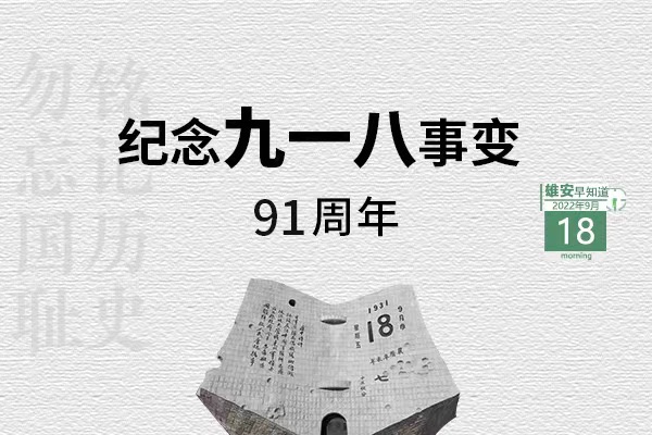今天是“九一八事變”爆發91周年紀念日。1931年,日本軍國主義悍然發動“九一八事變”,成為中國人民抗日戰爭的起點,同時揭開了世界反法西斯戰爭的序幕。勿忘國恥,警鐘長鳴。唯有牢記歷史,才能邁向光明的未來。