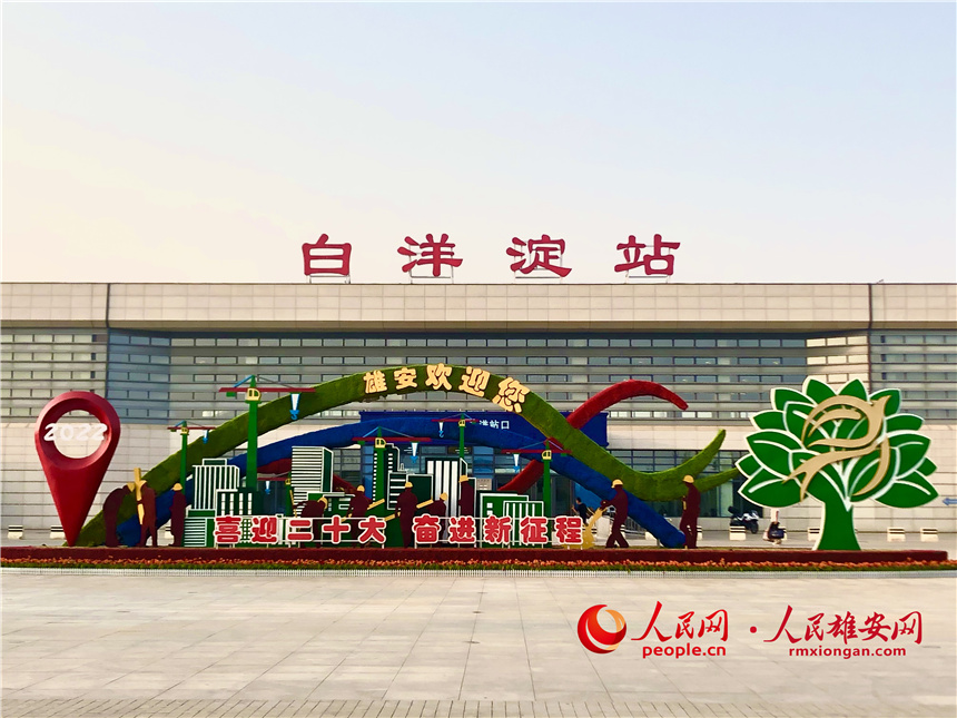 雄安新區白洋淀站前洋溢著濃厚的節日氛圍。王鐵成攝
