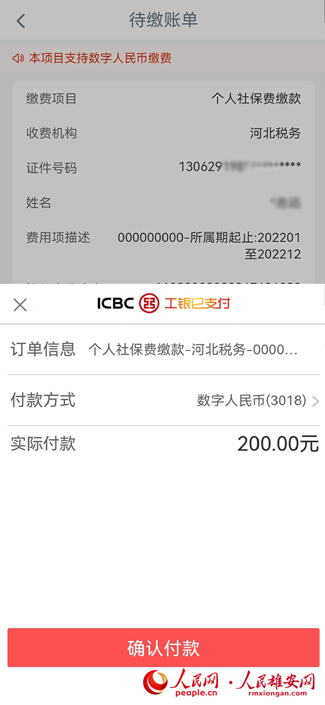 圖為個人社保費繳款賬單截圖。工商銀行雄安分行供圖