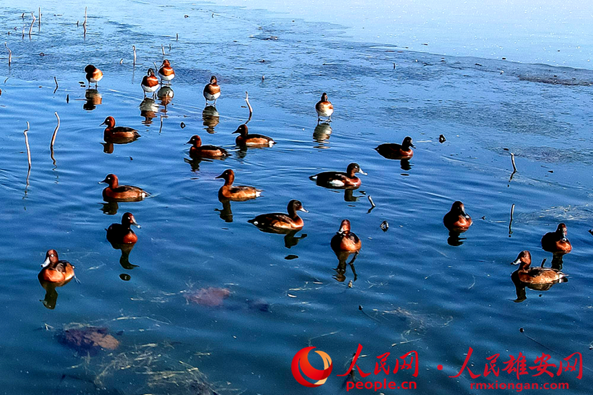 在白洋淀越冬的青頭潛鴨等鳥類。賀友順攝