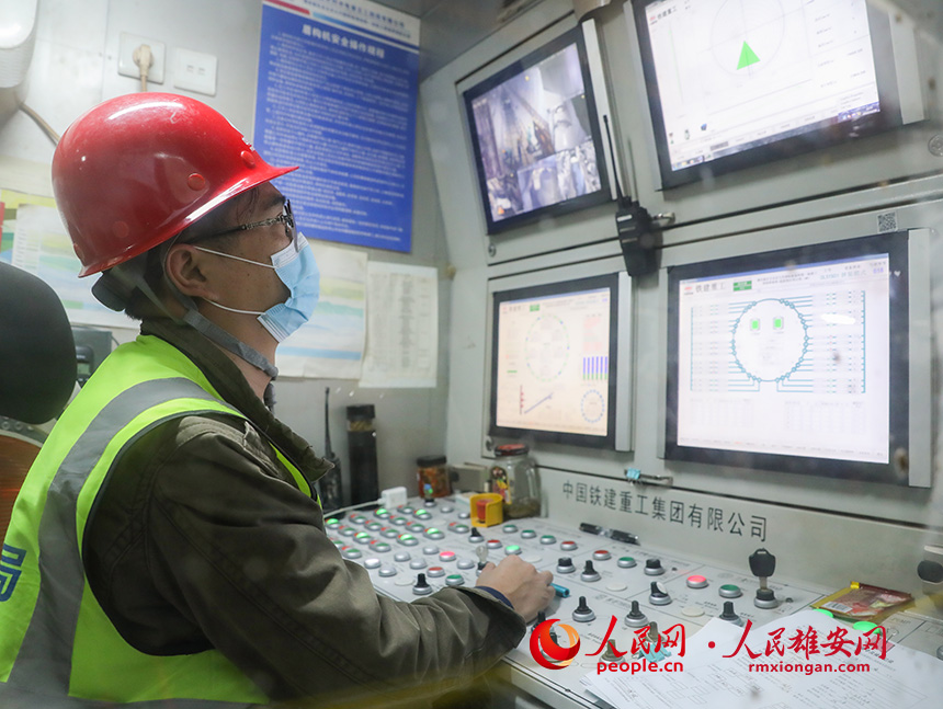 雄安新區至北京大興國際機場快線建設現場盾構機控制室內,工程師正檢查盾構機各項數據。人民網?李兆民攝
