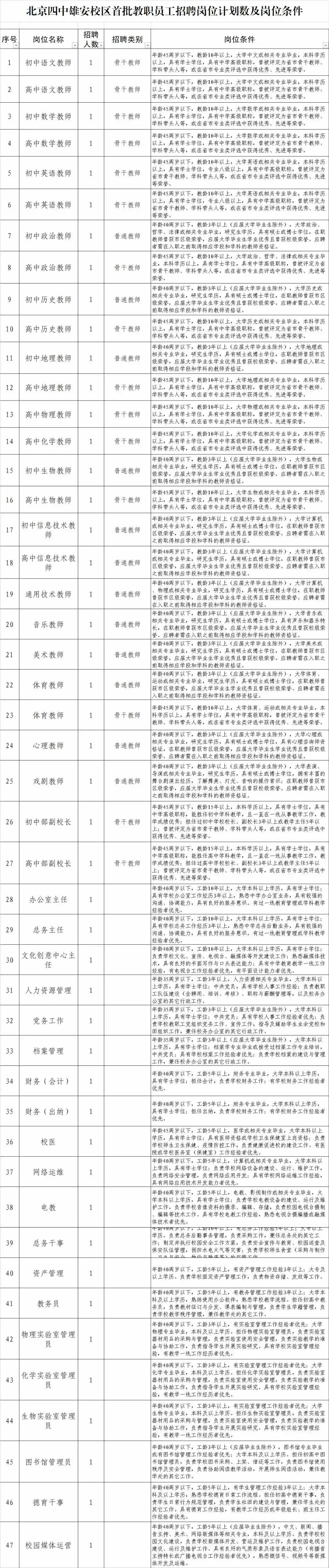 北京市援建雄安新區交鑰匙項目中學面向全國公開招聘教師公告