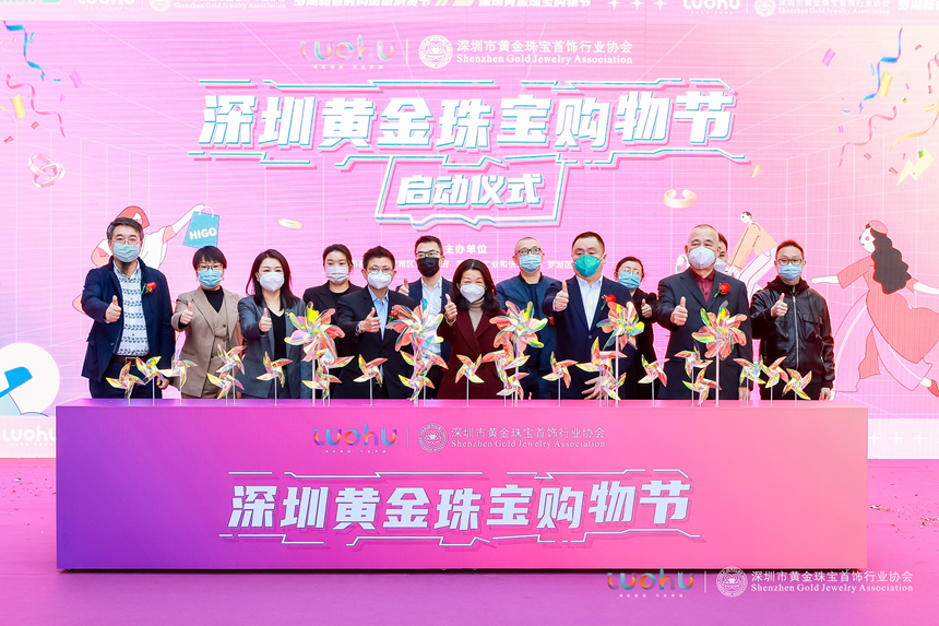 眾人將風車插入啟動裝置,宣布深圳黃金珠寶購物節啟動。