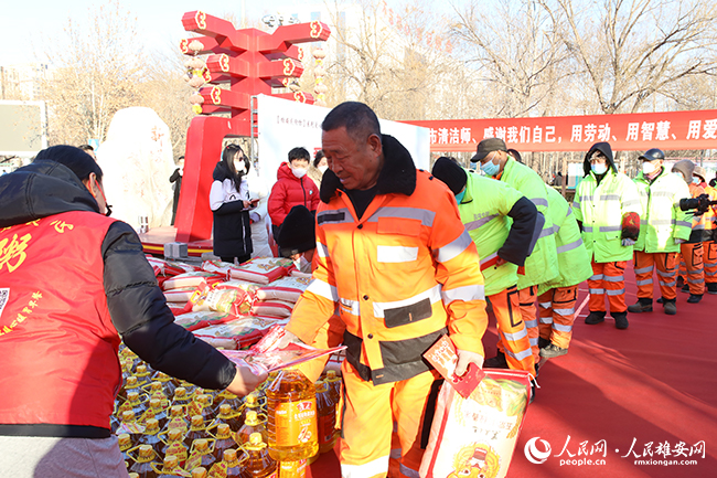 人民網雄安1月17日電(楊華龍)雄安新區容城縣15日舉辦“為環衛工人獻愛心“主題活動,為一線環衛工作者送去春聯、米、油等“新春大禮包”,以實際行動表達對“城市美容師”的關懷和敬意。