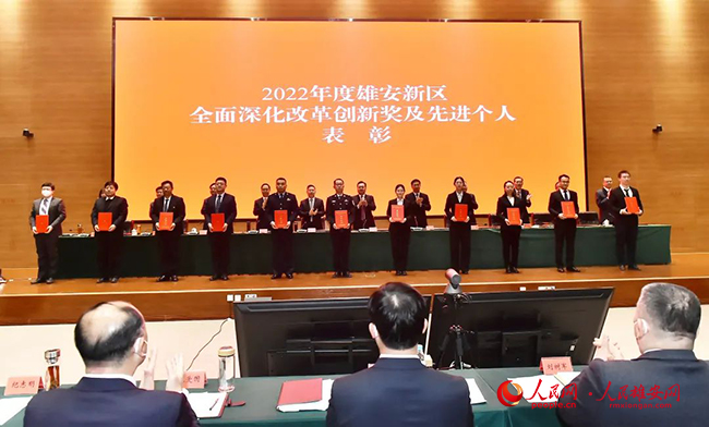 雄安新區黨工委副書記、管委會常務副主任,雄安集團黨委書記、董事長田金昌主持會議。會上,雄安新區黨工委副書記、管委會副主任萬岷宣讀了雄安新區全面深化改革創新獎和高質量建設發展先進集體、先進個人的表彰決定,對在2022年改革創新和高質量發展中表現突出的單位和個人進行了表彰。新區黨群工作部、建設指揮部辦公室、雄安雄商發展有限公司負責同志圍繞進一步加強作風建設分別作了發言。