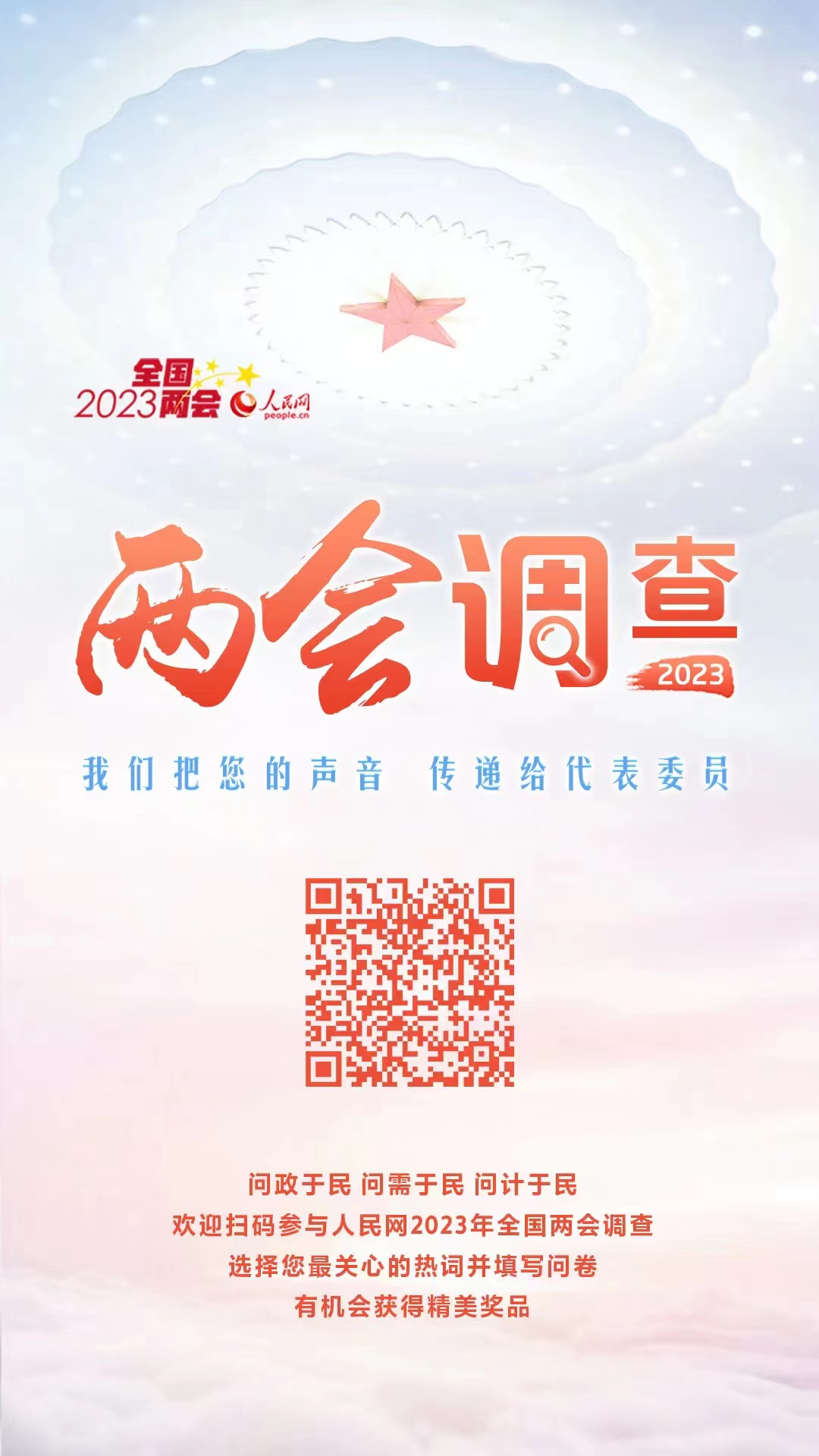 人民網2023年全國兩會調查于今日正式上線,這是人民網連續22年開展全國兩會調查。網友可通過人民網2023年全國兩會調查專題、“人民網+”客戶端、人民網法人微博、人民網官方微信、“學習大國”微信公眾號等全媒體通道進入調查頁面,選擇您最關心的熱詞并填寫調查問卷。