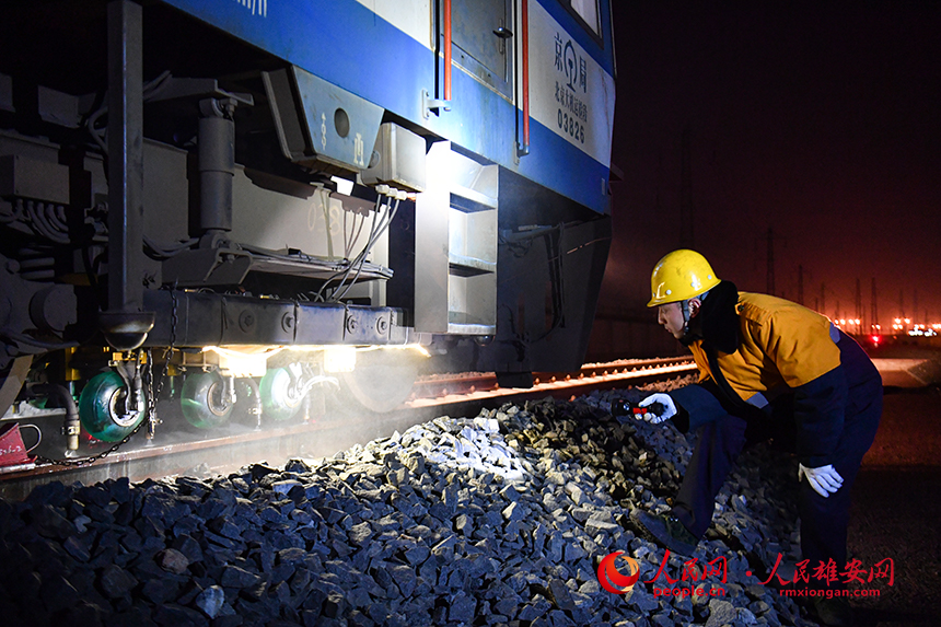 人民網雄安2月8日電?(宋燁文)“轟隆隆隆……咔嚓,咔嚓……”2月8日0時30分,一輛藍色的GTC-80J型鋼軌探傷車緩緩駛出北京動車段雄安動車所,它將經過京雄城際鐵路雄安站一路向北,最終到達北京。