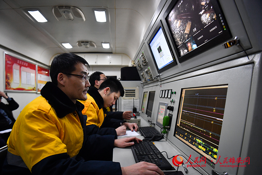 工作人員正在進行作業前檢測系統及工作裝置調試。韓冰攝