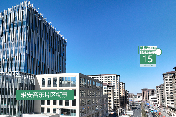 今天是2023年2月15日,星期三,天氣多云轉晴,-5℃~6℃。在封面和大家見面的是雄安容東片區街景。