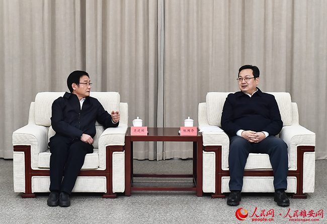 人民網雄安2月23日電 2月22日,中科院科技創新發展中心副主任吳建國一行到雄安新區考察。河北省委常委,雄安新區黨工委書記、管委會主任張國華與吳建國一行進行座談交流。