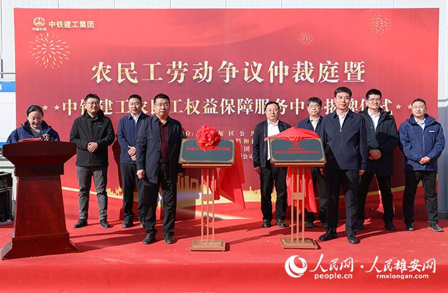 人民網雄安3月2日電 (劉師豪、李兆民)3月1日,雄安新區首家農民工勞動爭議仲裁庭暨農民工權益保障服務中心(中鐵建工)在雄東片區揭牌成立。