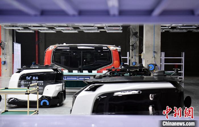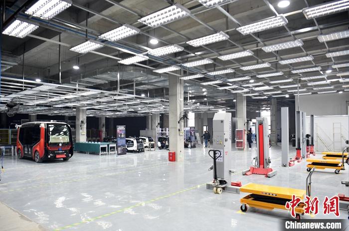 圖為2月17日,雄安新區科創中心中試基地里的悅享雄安科技有限公司展示的智能車輛。?中新社記者 韓冰 攝