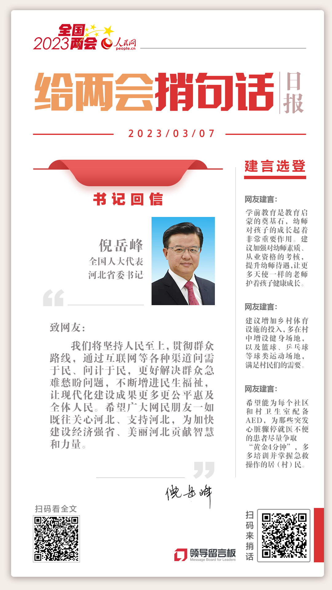 1、近日,全國人大代表、河北省委書記倪岳峰通過人民網致信網友,回應群眾關切。倪岳峰在信中介紹,京津冀協同發展向縱深推進,雄安新區建設邁出了堅實步伐,3家央企總部正在建設,4所高校選址落位。