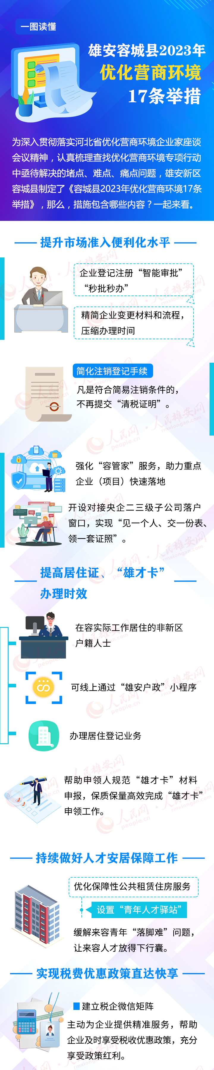 5. 深入貫徹落實河北省優化營商環境企業家座談會議精神,認真梳理查找優化營商環境專項行動中亟待解決的堵點、難點、痛點問題,雄安新區容城縣制定了《容城縣2023年優化營商環境17條舉措》,那么,措施包含哪些內容 ? 一起來看。
