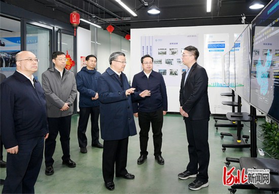 3月17日,省委書記、省人大常委會主任倪岳峰在雄安新區調研。省委副書記、省長王正譜參加調研。這是倪岳峰、王正譜在中國移動雄安產業研究院,認真聽取工作匯報,詳細了解科技研發、成果應用等情況。 河北日報記者趙海江攝