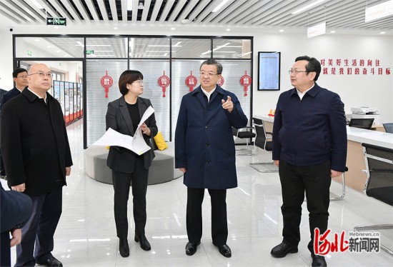 3月17日,省委書記、省人大常委會主任倪岳峰在雄安新區調研。省委副書記、省長王正譜參加調研。這是倪岳峰、王正譜在容東片區南文營社區黨群服務中心,詢問回遷群眾的就業、教育、醫療等情況。 河北日報記者趙海江攝