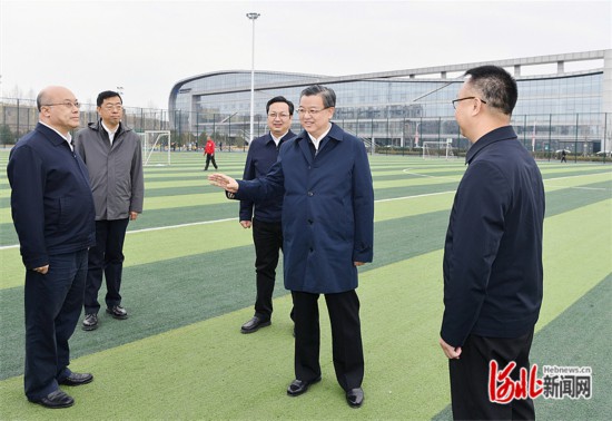 3月17日,省委書記、省人大常委會主任倪岳峰在雄安新區調研。省委副書記、省長王正譜參加調研。這是倪岳峰、王正譜實地了解雄安新區體育設施建設情況。 河北日報記者趙海江攝