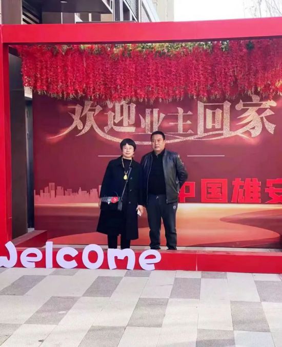 2021年12月,鄭運年與妻子在容東安置區的南文營社區回遷房交付點合影留念