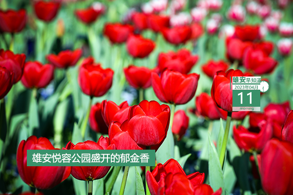 今天是2023年4月11日,星期二,天氣晴,6℃~20℃。在封面和大家見面的是雄安悅容公園里盛開的郁金香。