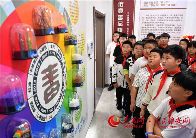 4月19日,雄安容和海棠小學的同學們正在禁毒教育體驗區內學習禁毒知識。人民網 宋燁文攝