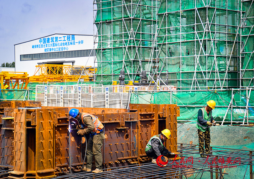 雄安新區至北京大興國際機場快線(R1線)項目五標段一分部建設現場,目前該分部有700余名建設者堅守一線。人民網 宋燁文攝