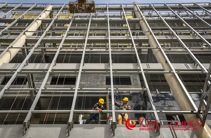 雄安創新研究院科技園區項目建設現場,工人正在進行外幕墻施工。任雙歡攝
