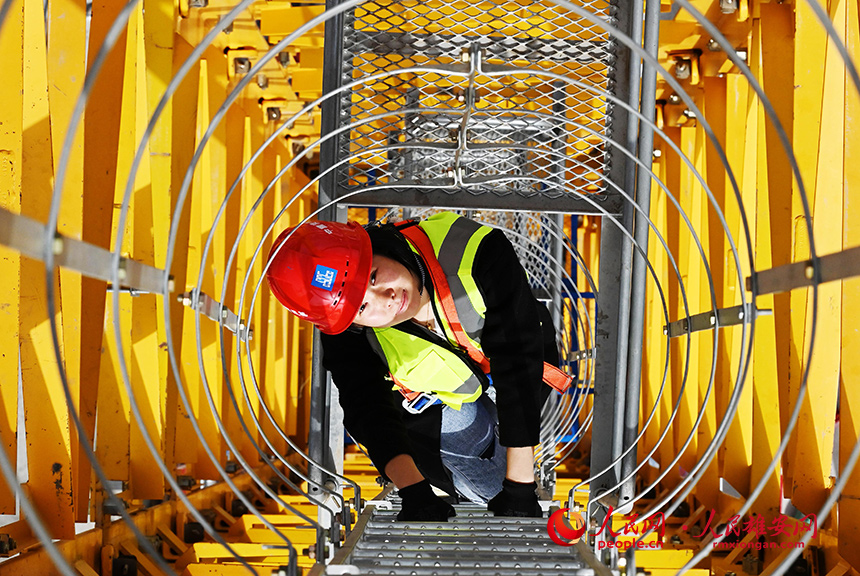 來自山西的“00后”女塔吊司機秦妮妮,目前奮戰在容西片區安置房項目建設現場。劉光昱攝