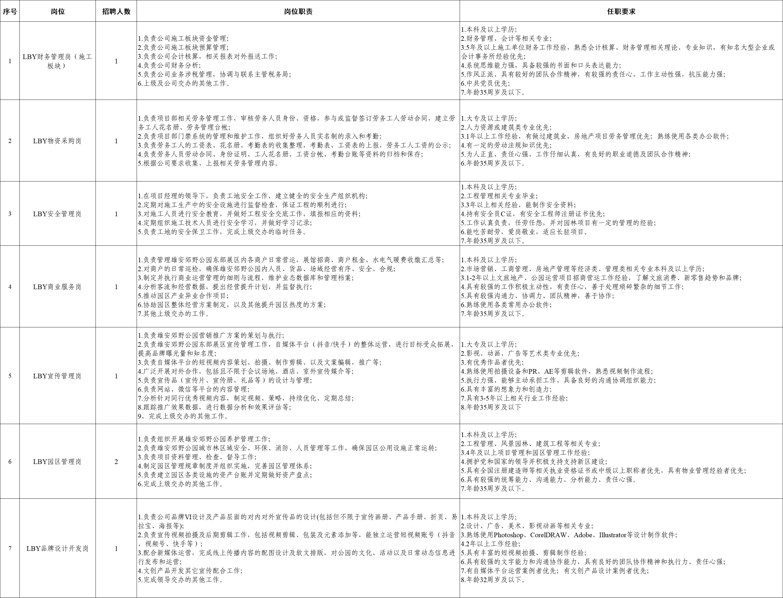 河北雄安人力資源服務有限公司(以下簡稱雄安人力公司)根據河北雄安綠博園綠色發展有限公司的運營管理工作需要,現面向社會公開招聘項目員工。工作地點在雄安新區,從事園區財務管理、物資采購、安全管理、商業服務、宣傳管理、園區管理及品牌設計開發等工作。