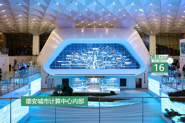 今天是2023年5月16日,星期二,天氣晴轉陰,21℃~35℃。在封面和大家見面的是雄安城市計算中心內部。