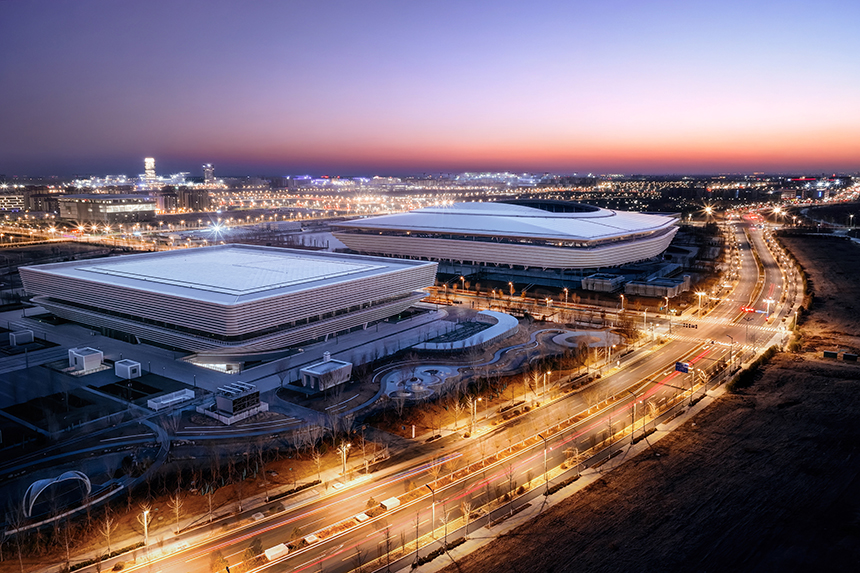 雄安會展中心作為雄安的“城市會客廳”,設計靈感源于“九合匯聚、山水淀堂”,其外部造型傳承漢唐經典,氣質雄渾穩重。袁小宜攝